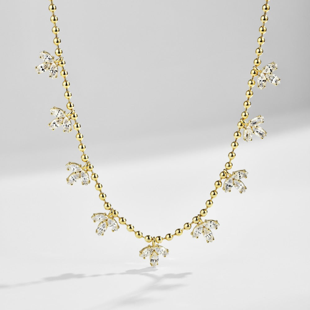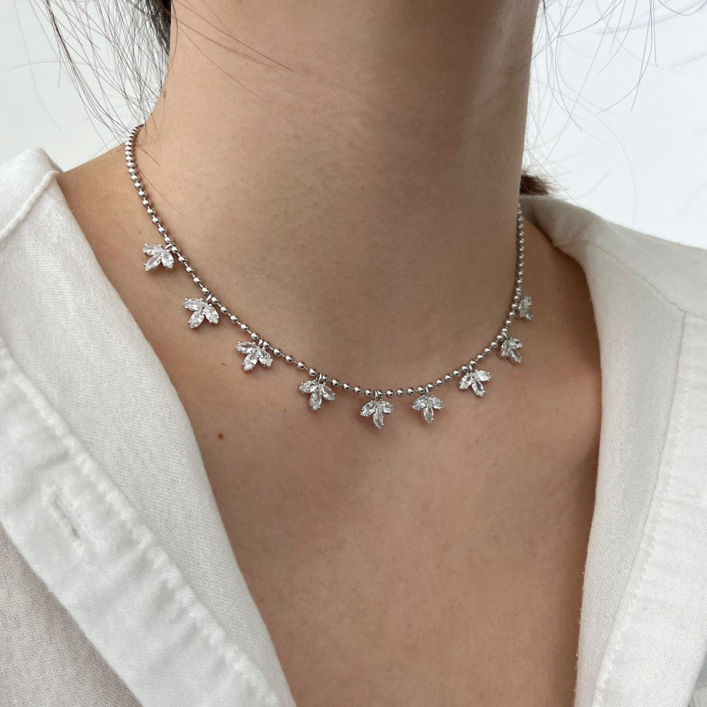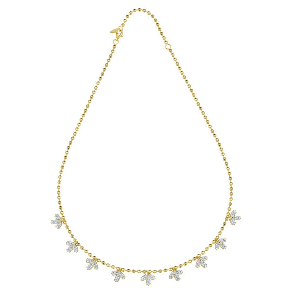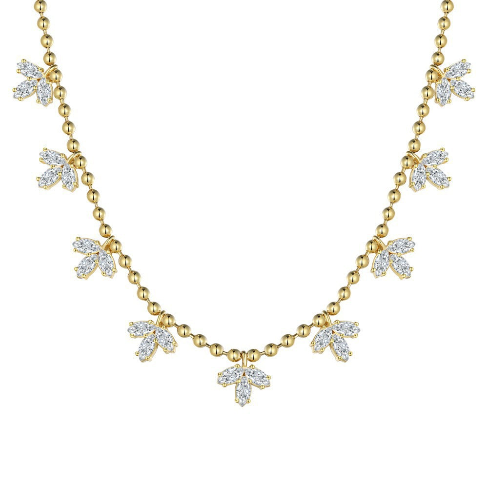Women's Fashion Horse Eye Stone Maple Leaf Necklace